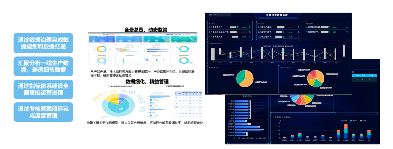建立“横到边、纵到底、全视角”的企业级指标体系,梳理综合计划部、运营管理部、财务部、物资装备部、生产车间、区段、班组责任主体,梳理各层级安全、生产、成本相关的产品产量、经济技术指标,层层落实生产经济责任制和管理考核制度。指标体系建设打通基层数据采集和指标下达执行工作的双向通道,通过数据贯通满足基础的指标统计报表的同时,让各层级管理和决策层能全面动态监管企业运营关键指标,满足监控预警、追溯分析和解决问题的作战指挥诉求,从而系统地提升“一盘棋”的精益运营管理水平,保障企业战略目标实现。